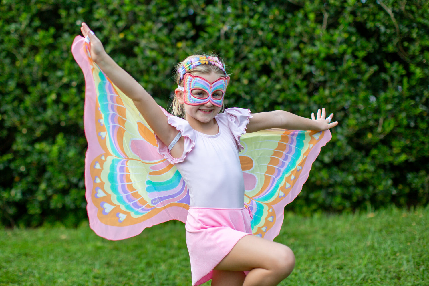 ✅ BOOST YOUR KIDS’ IMAGINATION: Designed to encourage imaginative role play, self-expression and poise, these fanciful fabric wings with a matching soft sateen fabric mask give your child a chance to transform into a butterfly and fly around in colorful fashion.